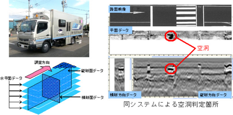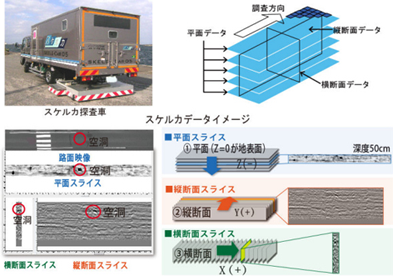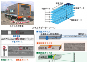・従来の探査車(7chアンテナ)と比較し、解像度を約5倍向上させた3次元データとしたことにより、メッシュ調査が不要になり経済性・施工性・安全性が向上し、工程が短縮される。