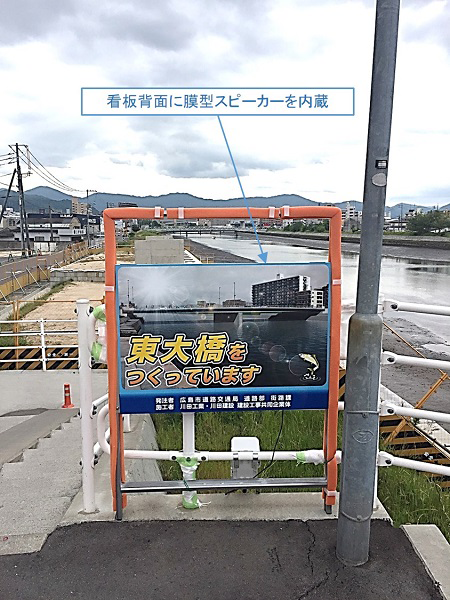 ・工事用看板を視覚のみによる情報提供から、膜型スピーカーによる音声との併用に変えた。