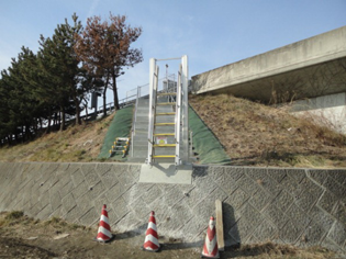 ・津波が想定される地震発生時に迅速に避難の障害となる法面擁壁を超え高台への避難移動が容易となる。