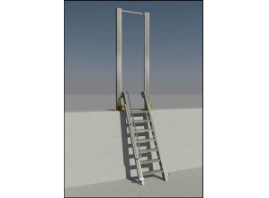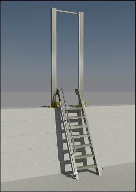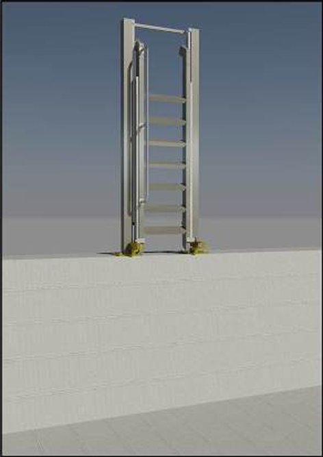 ・現場打ちコンクリート階段を昇降式のアルミ製ユニットとした。