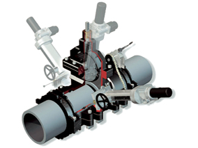 ・EM穿孔機を用いて駆動装置で回転させ溝状穿孔を行い、ソフトシール弁体を挿入する鋳鉄管、鋼管専用の不断水バルブシステム