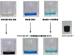 ・アスファルト混合物の混合温度を、従来のアスファルト混合物と比較して30℃程度低減できるため、製造時に排出される二酸化炭素の量が約20%低減され、地球温暖化現象の抑制に寄与することができる。