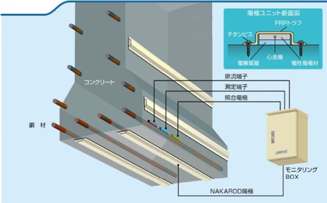 ■流電陽極材と電解質層をFRP製トラフで覆いユニット化したことにより、以下の効果が期待できる。