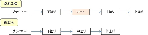 ・繊維シート接着工が不要なため、工程の短縮。
