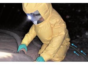 ・送気マスクを使用しているのでスーツの破損などの異常時でも送気マスクで対応できる。