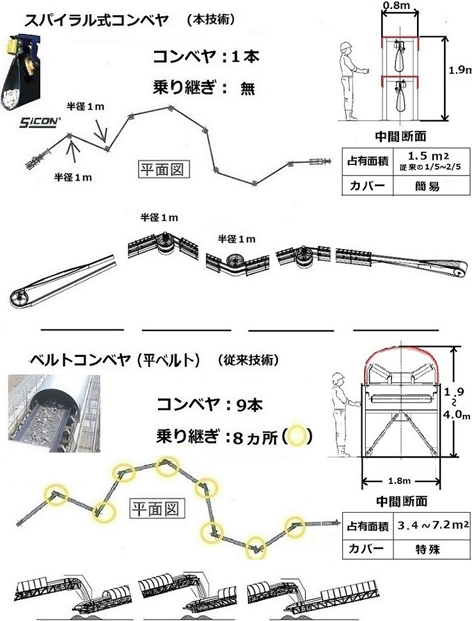 ・その効果として乗り継ぎがなくなり、乗り継ぎ部を起因とする粉塵、騒音、ベルト・シュートの摩耗・損傷などの問題は生じない。