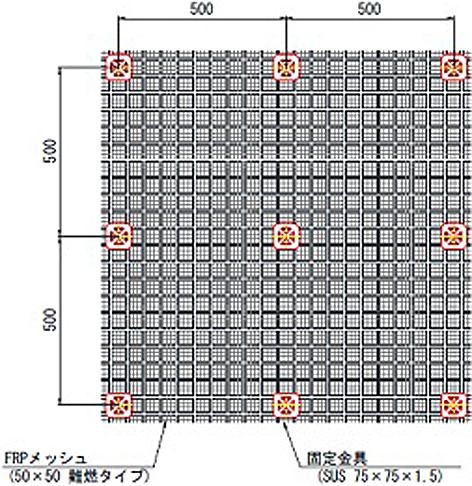 ・はく落対策が必要な箇所に張り巡らせることで、万一のはく落にも完全に対応できるため、安全性の向上が図れる。