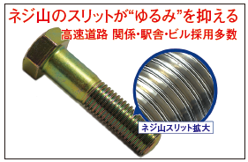 ・ネジ山にスリットを設けることによる、反発力を利用したボルト