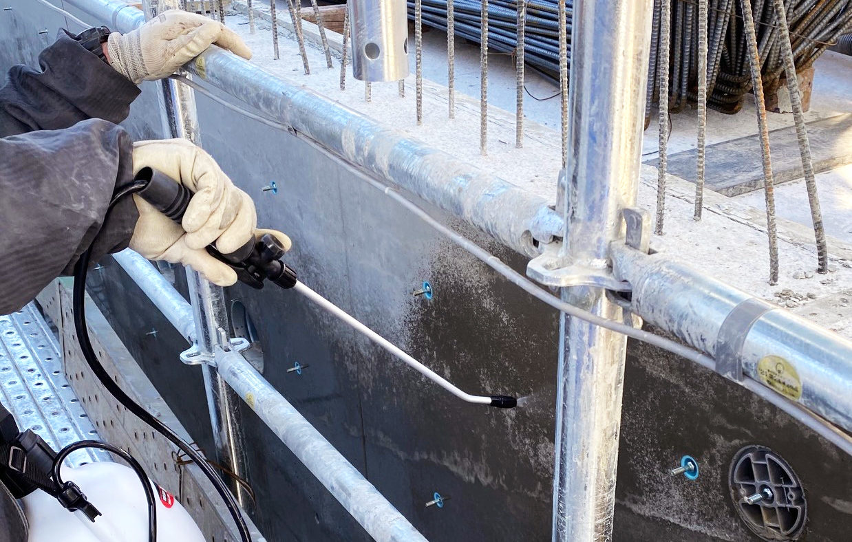 ・型枠脱型後コンクリートを湿潤状態に保つ必要があるので風、気温、湿度などの影響を避けるために速やかに塗布する。