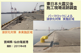 液状化対策に用いる材料を、セメント系固化材(JG-1号)から液状化対策用溶液型恒久グラウトに変えた。