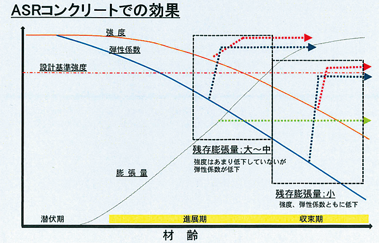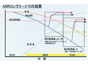 超微粒子シリカ含有により、コンクリートの表面に塗布した際、超微粒子シリカがコンクリート中の水酸化カルシウムと結合。ケイ酸カルシウムを生成して組織が緻密化することにより、改質強度が上がり品質の向上が図れる。