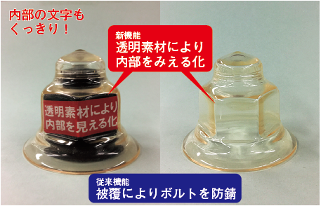 ・点検作業時、キャップ内部が透視できボルト劣化を視認できるため、早期対策が可能となり既設鋼構造物維持管理の信頼性が高くなり、安全性向上が図れる。