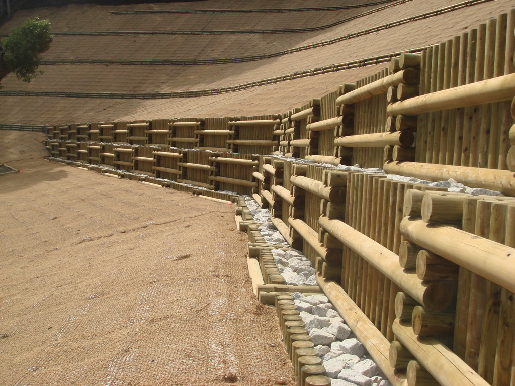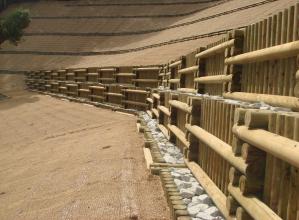 間伐材二重井桁枠工