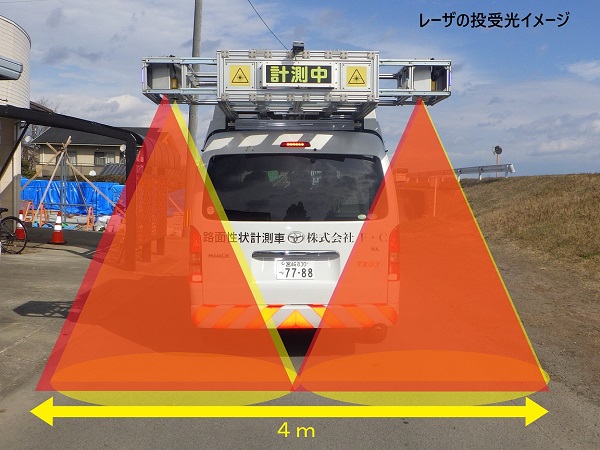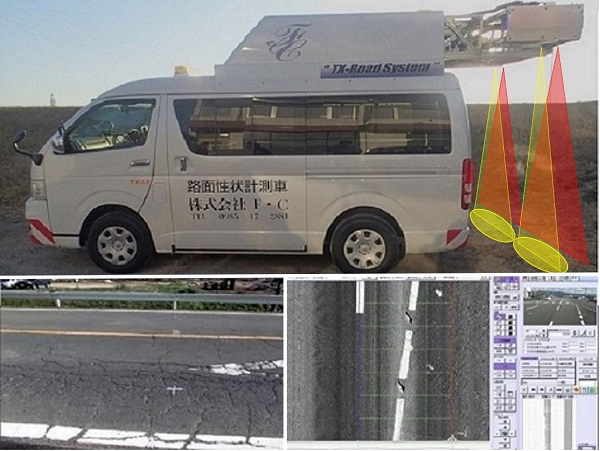 ・人力による路面性状確認を、車載型レーザカメラによる測定記録に変えた。