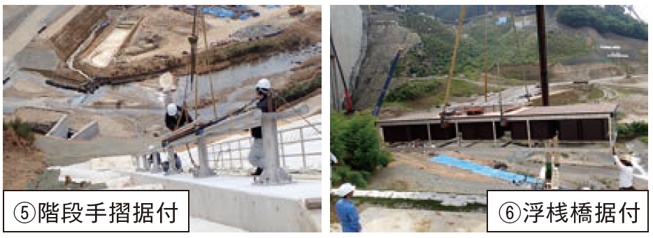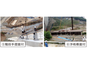 ・2本のガイドレールの平行度を精度よく保持されていなければ、浮桟橋本体はレールの中途で引っ掛かり、水位に追従した上下運動ができなくなる。