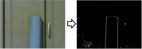 ・杭の鉛直度はPCのアプリケーションにより、画像の2値化処理を手動で施し、杭の画像のエッジ検出によって、杭の傾きを数値化する。