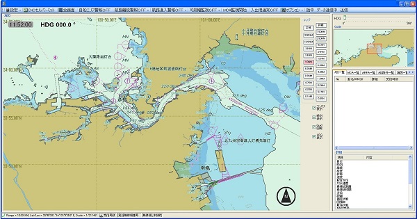 1.電子海図を利用して、運航経路及び経路幅を設定し、経路を逸脱した際にはサイレン及びランプにて自動警告を行い、針路の逸脱を防止する。