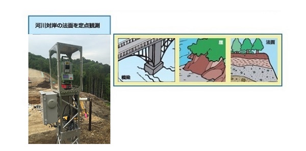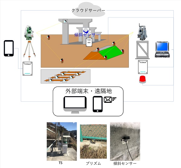 人によるトータルステーションでの計測から、トータルステーションや傾斜計を利用した自動変位計測システムに変えた。