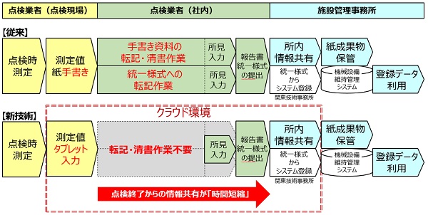 ・点検作業後すぐに点検結果が確認できるため、情報化が向上する。