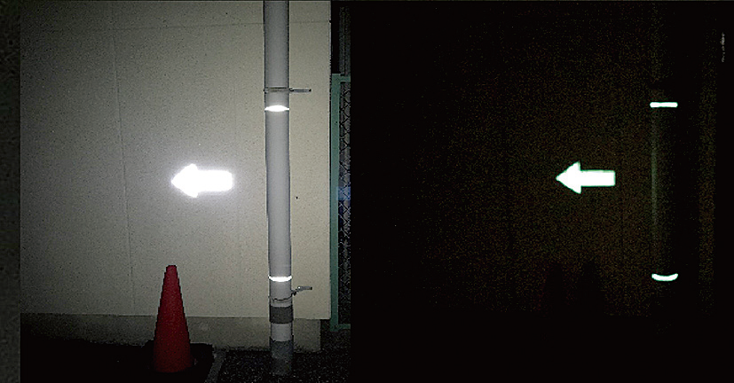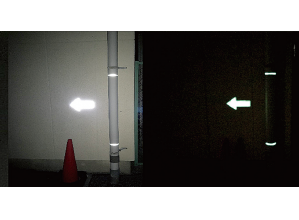 夜間に光源がなくても蓄光の発光が視認できるため、安全性の向上が図れる。