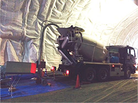 ・コンクリートアジテータ車にてポリストロンを投入するための繊維投入機のスペース、ポリストロンの在庫スペースが必要(10m×4m)