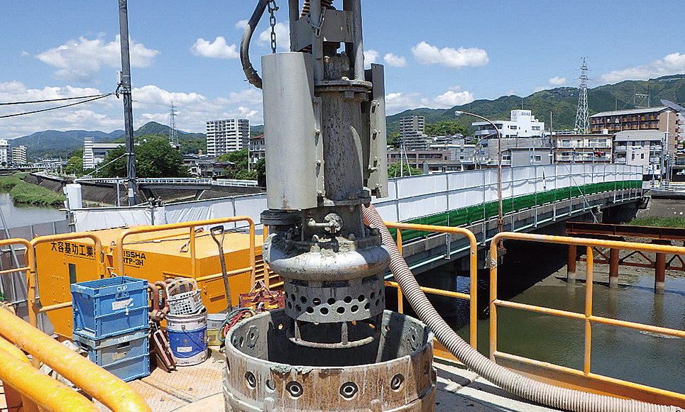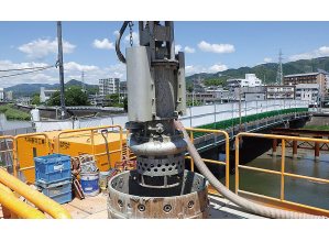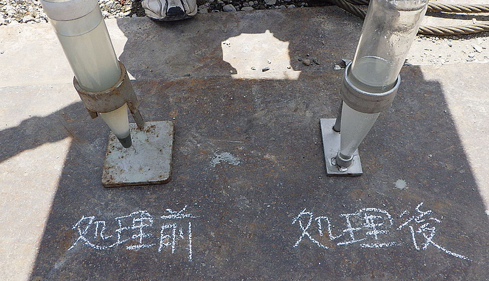 沈殿バケットによる方法(一次孔底処理)と水中サンドポンプによる方法(二次孔底処理)を、スライムクリーナー工法により二次孔底処理が不要となった。