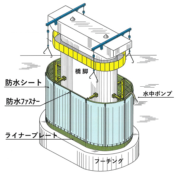・潜水工によるライナープレートの水中組立を、フロート式プラットフォーム上での気中組立に変えた。