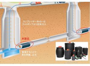・コンプレッサを使用し、止水ボールへ空気注入および排気ができるホースを活用することにより、止水時間を短縮でき、作業効率に優れる。