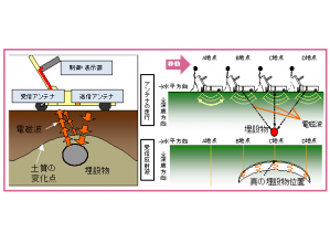 地下埋設物の探査が可能なため、掘削工事の前に探査を実施すれば埋設物との接触事故を未然に防止することが可能である。