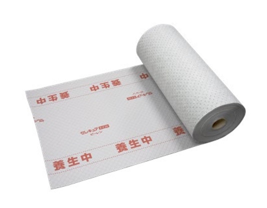 コンクリートの養生を不織布マットとブルーシートの2層構造から、断熱材と保水材の複合構造に変えた。