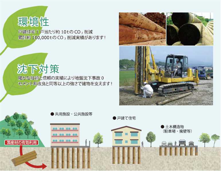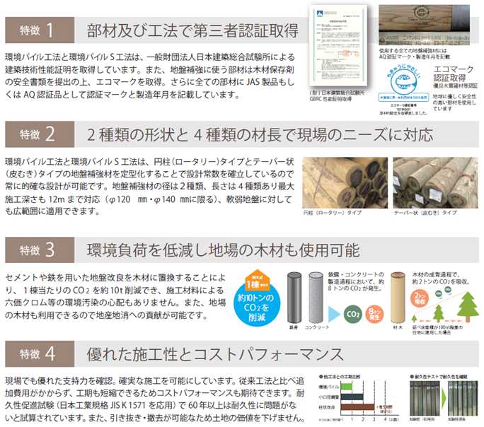 ・地盤補強材を未処理木材から防腐・防蟻処理を施した木材に変えたことにより、耐久性(材の品質)が向上する。