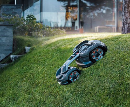除草等の草刈りに用いる機械を有人が操作する機械からロボット型バッテリー動力式芝刈り機に変えた。