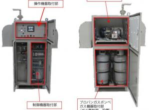 ・LPガスボンベを筐体内に設置:装置筐体内の収納室に設置することにより、配管・配線作業が不要となり、施工性が向上する。