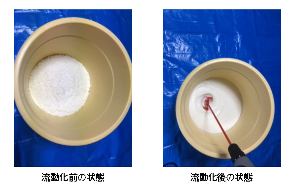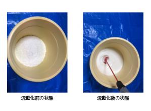 ・水(海水、淡水、温水、冷水)を加える事で流動化出来る。
