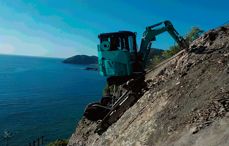 ● 崩壊・落石の予測される現場では、ラジコン運転作業可能
