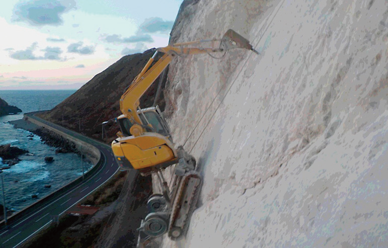 高所法面掘削機による掘削工法
