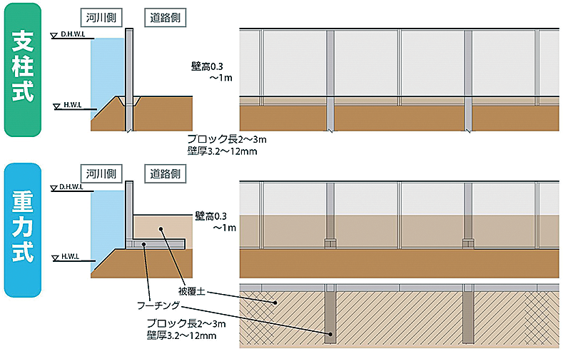 河川洪水や高潮対策に対応可能な鋼製止水壁