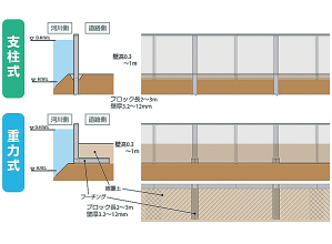 ・設置方法によってアンカー式、支柱式、重力式の種類がある。
