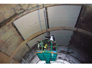 ローラ塗りや噴霧によるけい酸塩系表面含浸材の塗布作業をけい酸塩系表面含浸材を塗布した表面被覆材を張付ける作業に変えた。