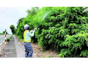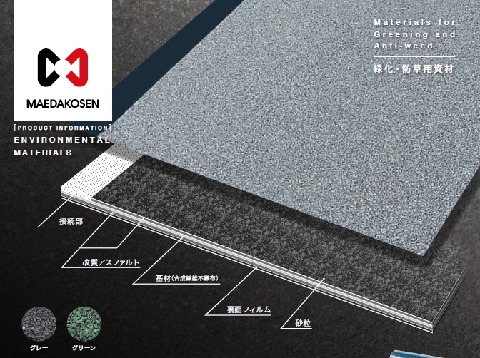 一般的な防草シートから、30年以上の耐候性を確保した改質アスファルト系保護シートに変えた。