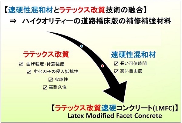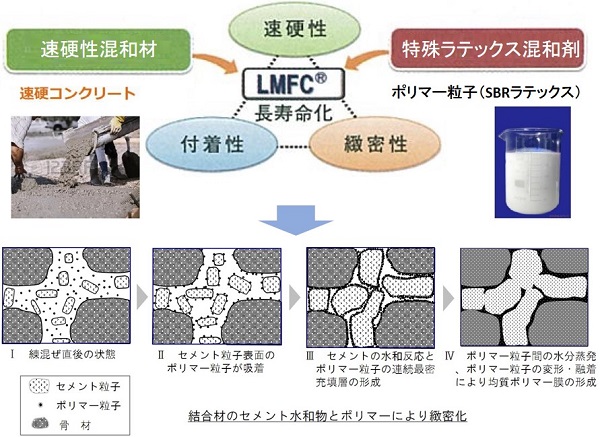 コンクリート構造物および舗装の表面補修・補強材料「ラテックス改質速硬コンクリート(LMFC)」