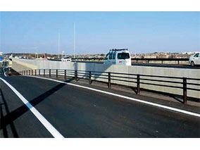 二点目は、従来工法の現場打ちコンクリートの場合、橋梁や高架などの高所での型枠工や鉄筋組立など多工程の作業が必要であった。プレキャスト化することにより、現場での据付作業のみとなり、作業工程が簡素化された。