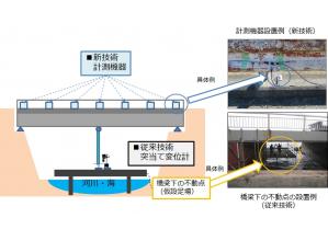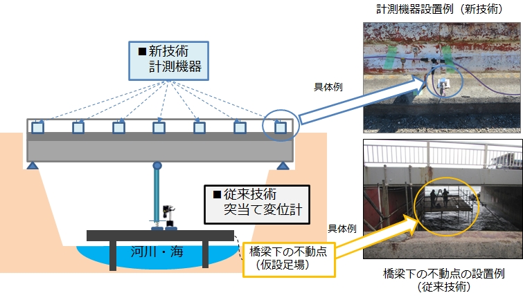 ・計測機器の設置作業を橋面上に置くだけの作業に変えたことにより、橋梁下に変位計を設置および撤去するための作業費、機材費を不要とできるため、経済性の向上が図れる。