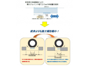 ・バインダー自体の伸び性能を高め、かつ特殊合材に使用している骨材の最大粒径を大きくして骨材間のバインダー量を確保し、敷均した後にバインダーのみを確実に充填する工法により、最小ジョイント幅250㎜で、20㎜の伸縮量を実現した。
