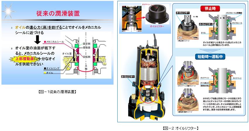 (1)新技術採用製品はメカニカルシールへ潤滑油を安定供給することでメカニカルシールの信頼性(品質)の向上が図れる。