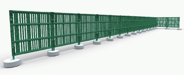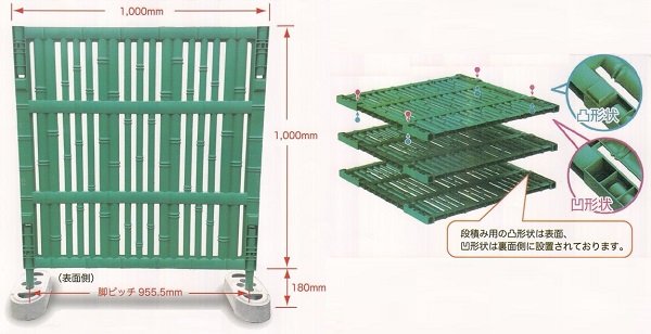 ・竹をモチーフにしたプラスチック製フェンスに変え、軽量にしたため設置・撤去が容易で、景観に配慮した仮囲いの設置が可能となるため周辺環境への影響抑制が期待できる。
