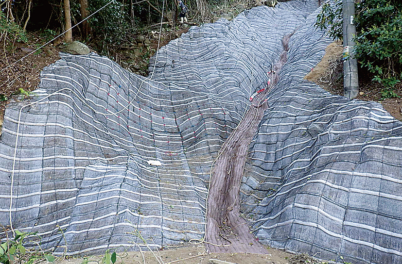 ・このため、モルタル吹付機を用いて吹き付ける方法の施工箇所においても、植生マットを張付ける方法への適用が可能となった。