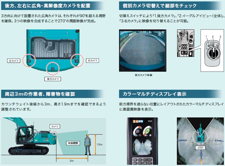 オペレータの目視から270度の俯瞰映像がモニタ表示できる外周確認補助システムに変えた。