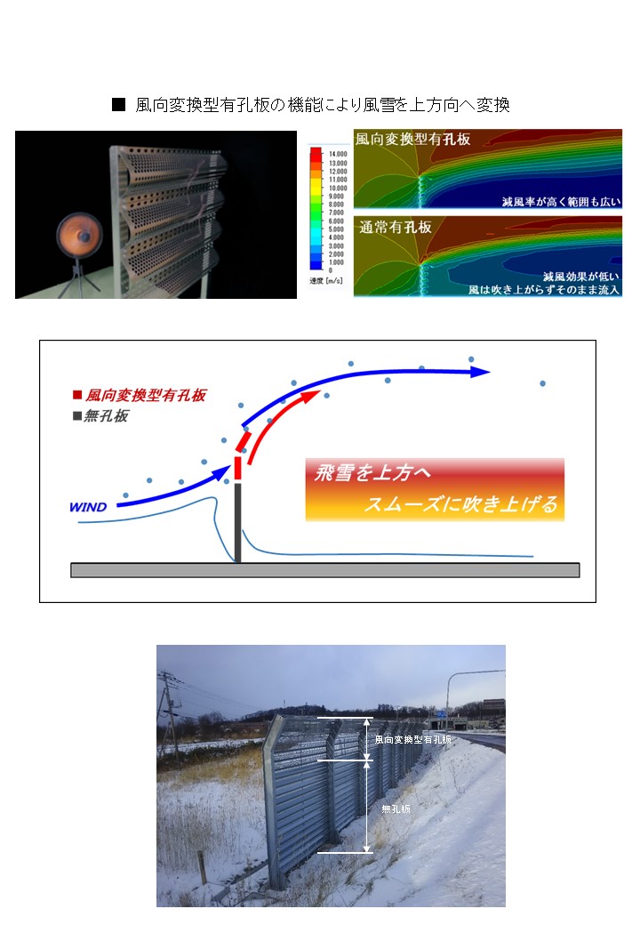 1)既設吹き止め柵の一部に改良を加えるだけで高い防雪効果を発揮する。