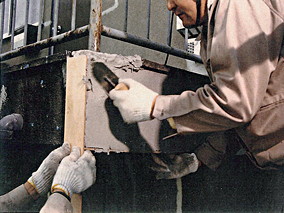 プライマー・接着剤兼用材と不織布複合高強度ポリエチレン繊維シートを用いた工期短縮コンクリート片...